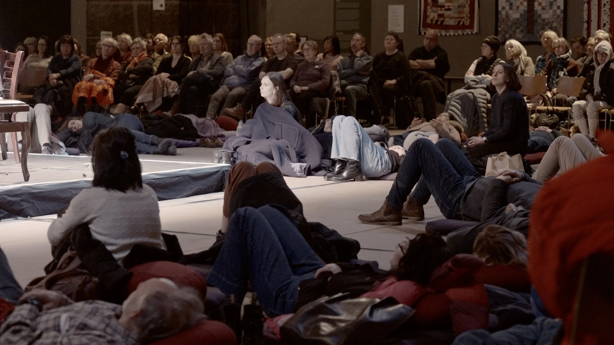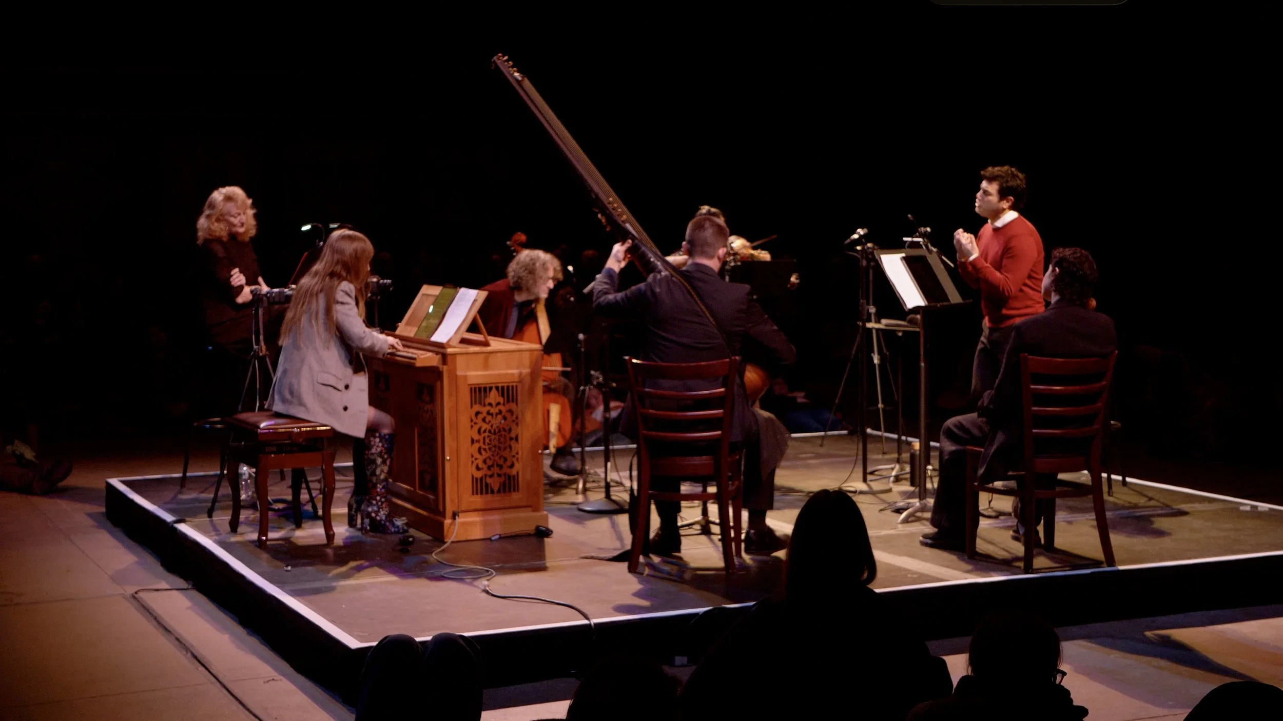 Another symptom of surviving the whipstorm of our moment is that we are conditioned to look down for all sorts of reasons. Whether it’s gluing ourselves to the tiny screens in our hands with their infinite scroll, ducking for cover out of fear of whatever blow is coming next, or hanging our heads in shame and sorrow at the latest atrocity in the news, we are conditioned to keep our eyes focused on the floor. Krista, Bach, Buxtehude, Pachelbel, the musicians of the baroque ensemble Theotokos, and I asked our audience to consider looking up instead. Carnegie Hall’s Well-Being concerts invite the audience to seat themselves in all sorts of ways, with some people opting for traditional chairs, others choosing meditation cushions, and some even laying on some yoga mats on the floor. Those lying on the floor perhaps had the most ideal view as the music reverberated around them as they gazed up at the soaring buttresses of the ceiling of St John the Divine.